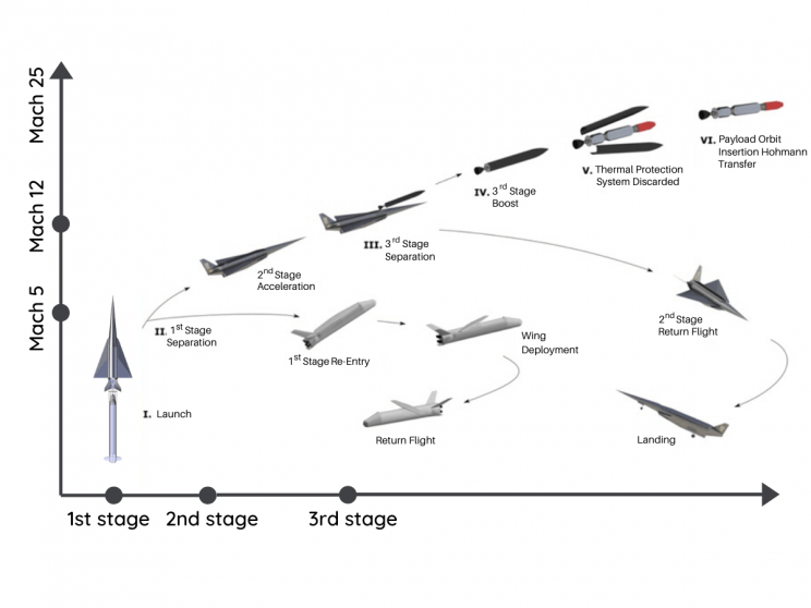 The Delta-Velos will launch attached to Hypersonix’s reusable Boomerang first-stage booster, which also returns to Earth for reuse in a similar fashion to SpaceX’s Falcon9 first stages. Once in the upper atmosphere, the Delta-Velos spacecraft will release satellite payloads of up to 50 kg (110 lb), which will then be boosted to low-Earth orbit (LEO) or sun-synchronous orbit (SSO).